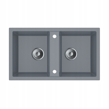 Zlewozmywak dwukomorowy 76x44 wpuszczany granitowy MILO BRAVO szary